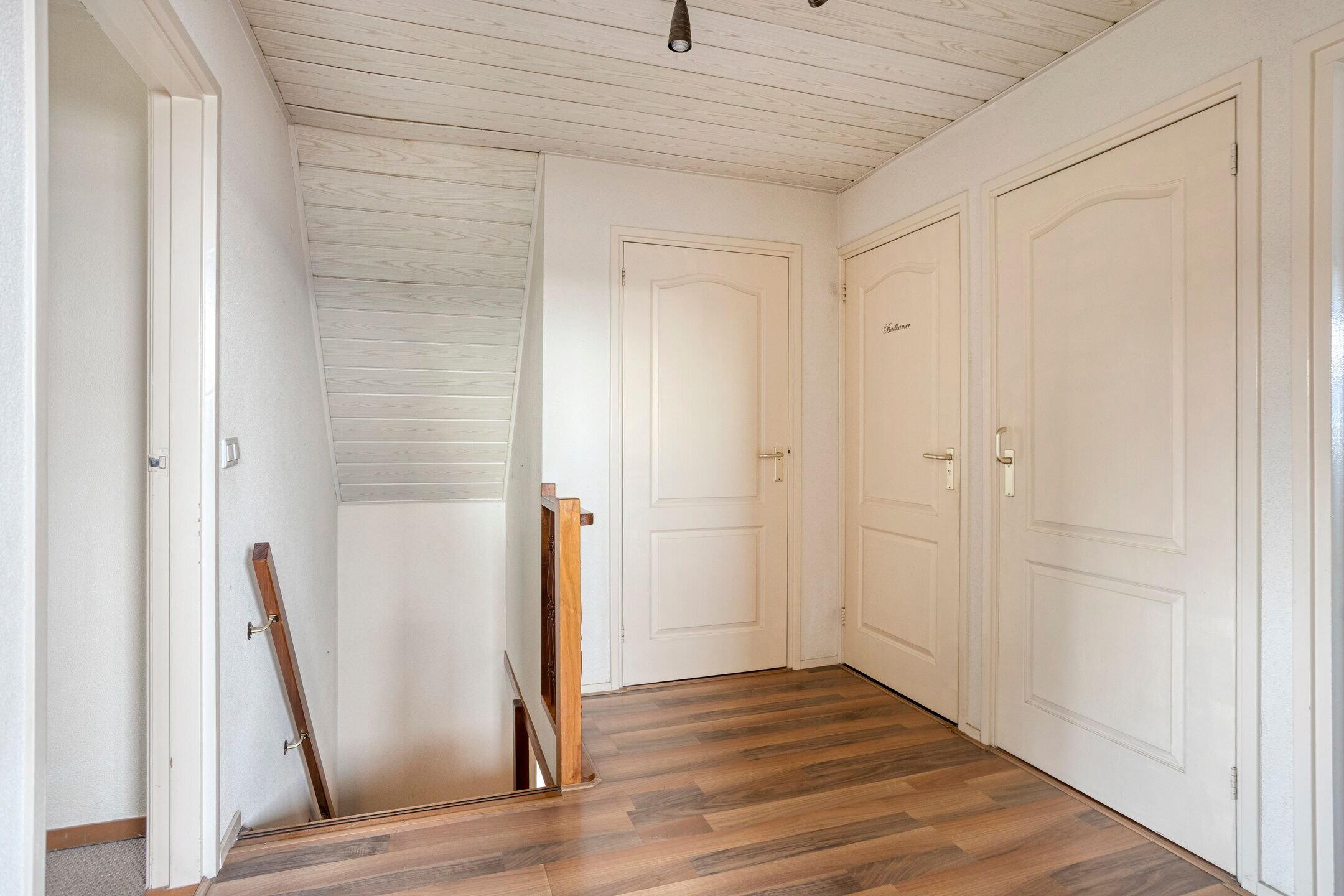De overloop met inbouwkast geeft toegang tot vier slaapkamers en een bergkast. Aan de voorzijde van de woning bevinden zich 2 ruime slaapkamers. Tegenover de trapopgang is toegang tot een slaapkamer met dakkapel. Aan de achterzijde van de woning bevinden zich een ruime slaapkamer en de ruime badkamer, die compleet is ingericht met een ligbad, douche, toilet en wastafel.