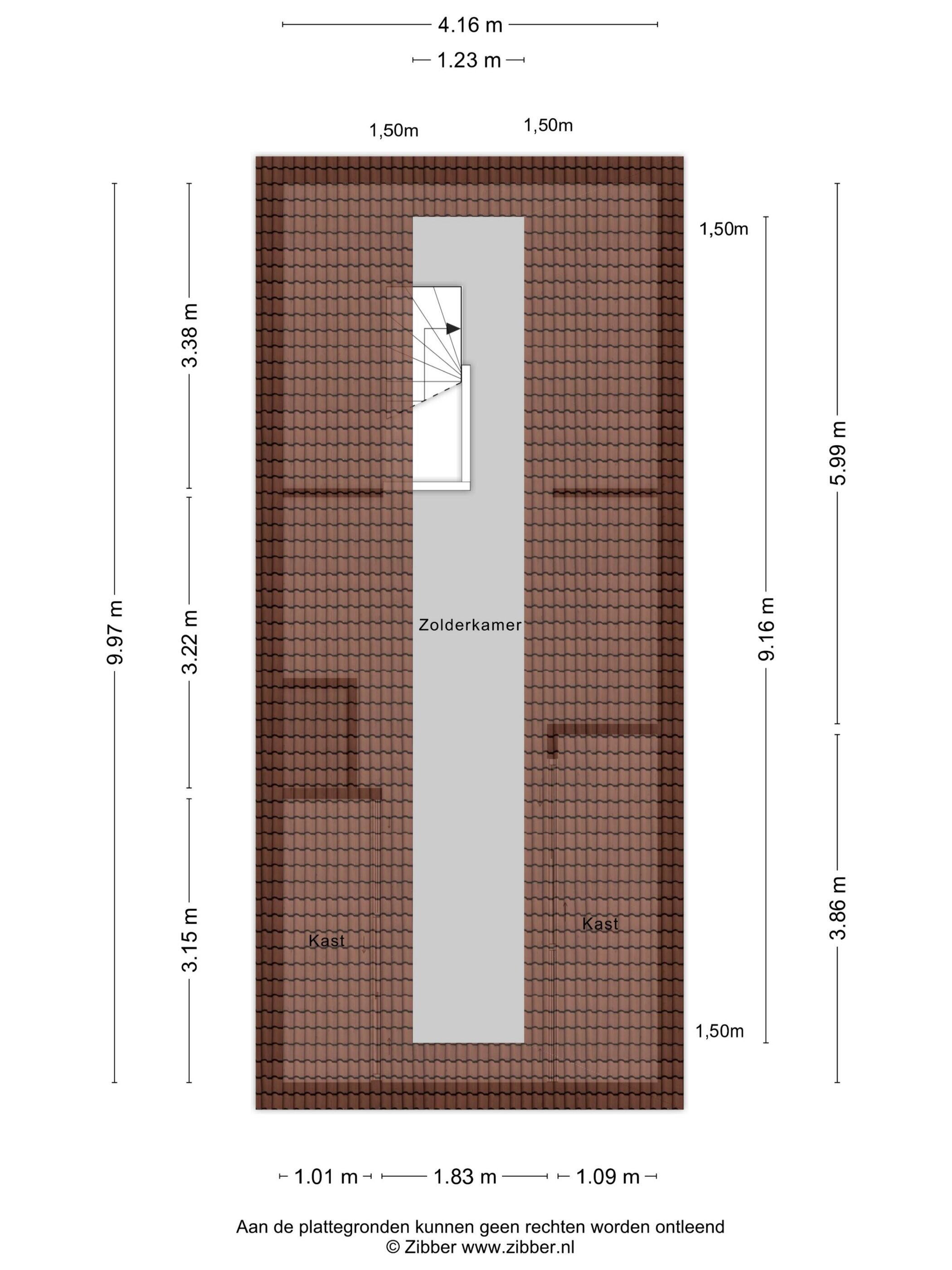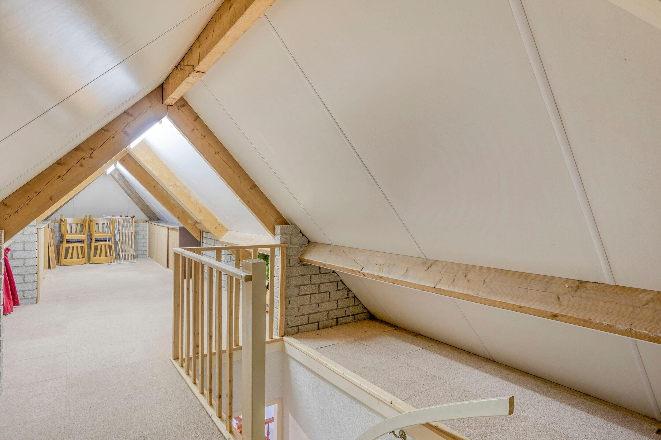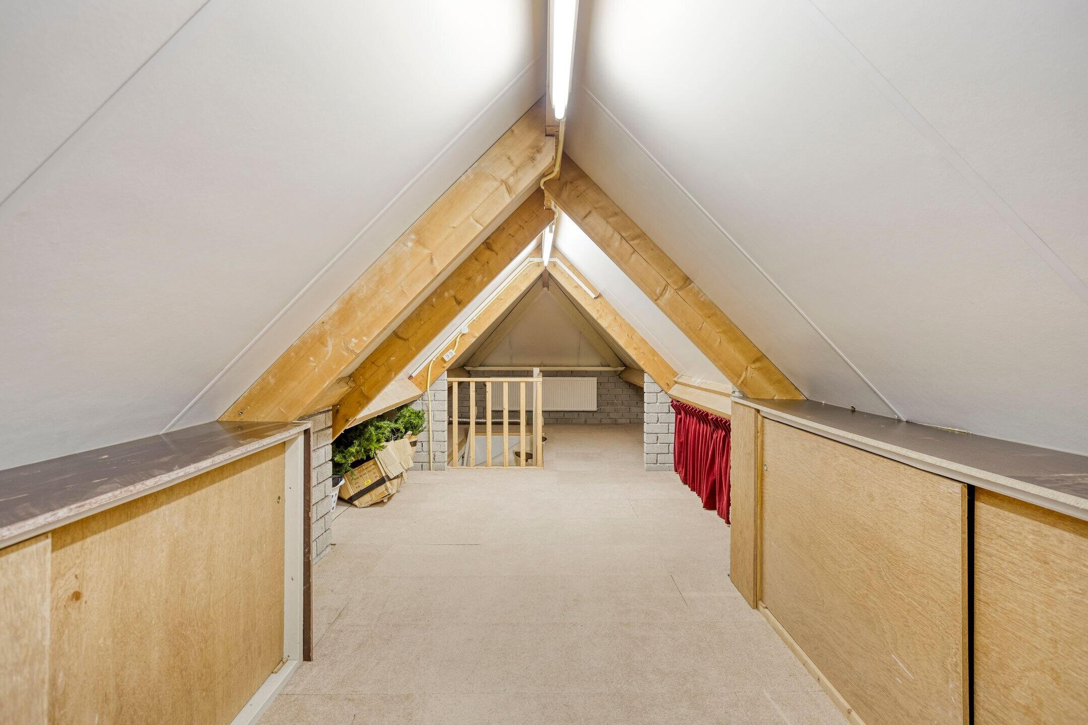 Via een vaste trap te bereiken en momenteel in gebruik als praktische bergruimte.