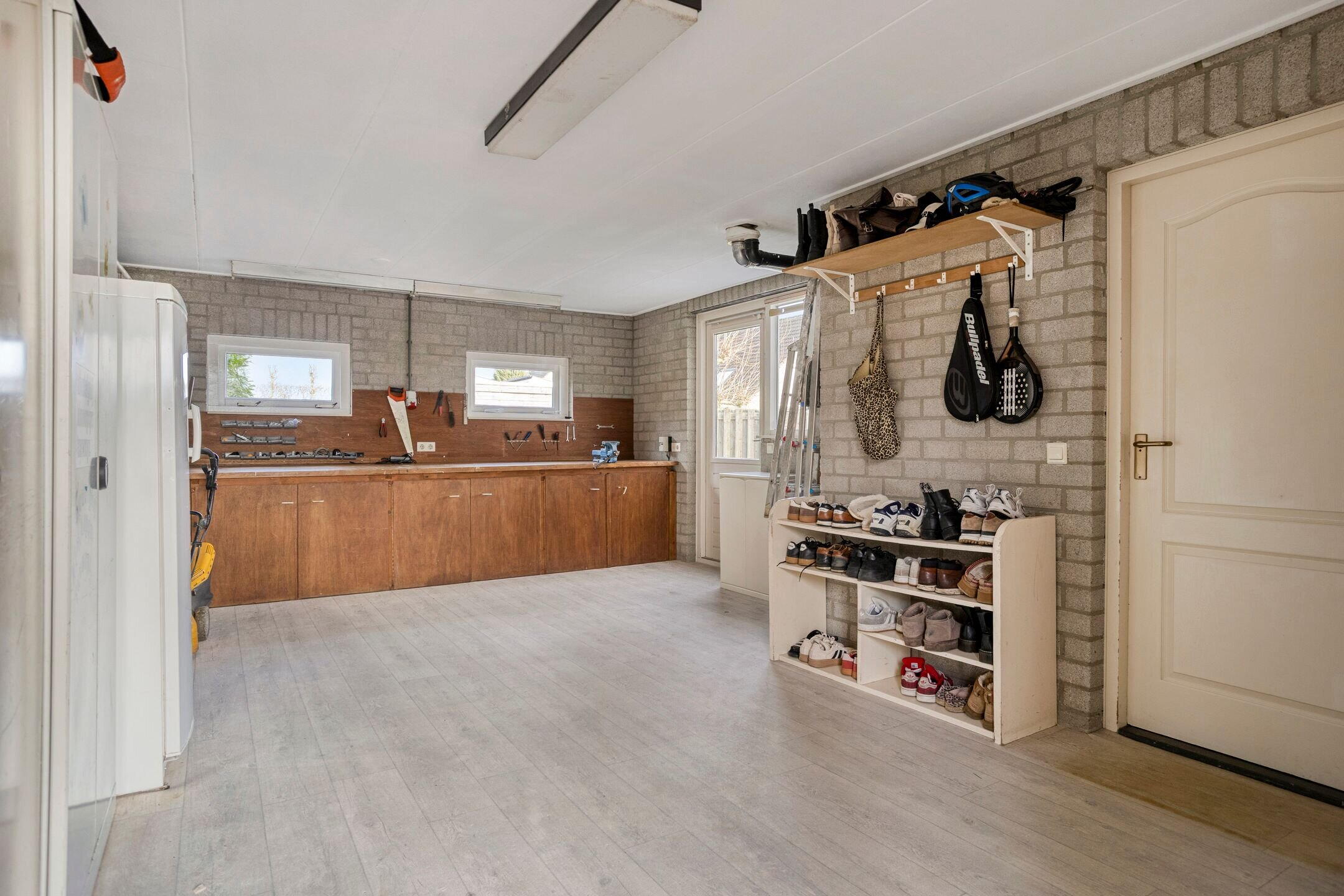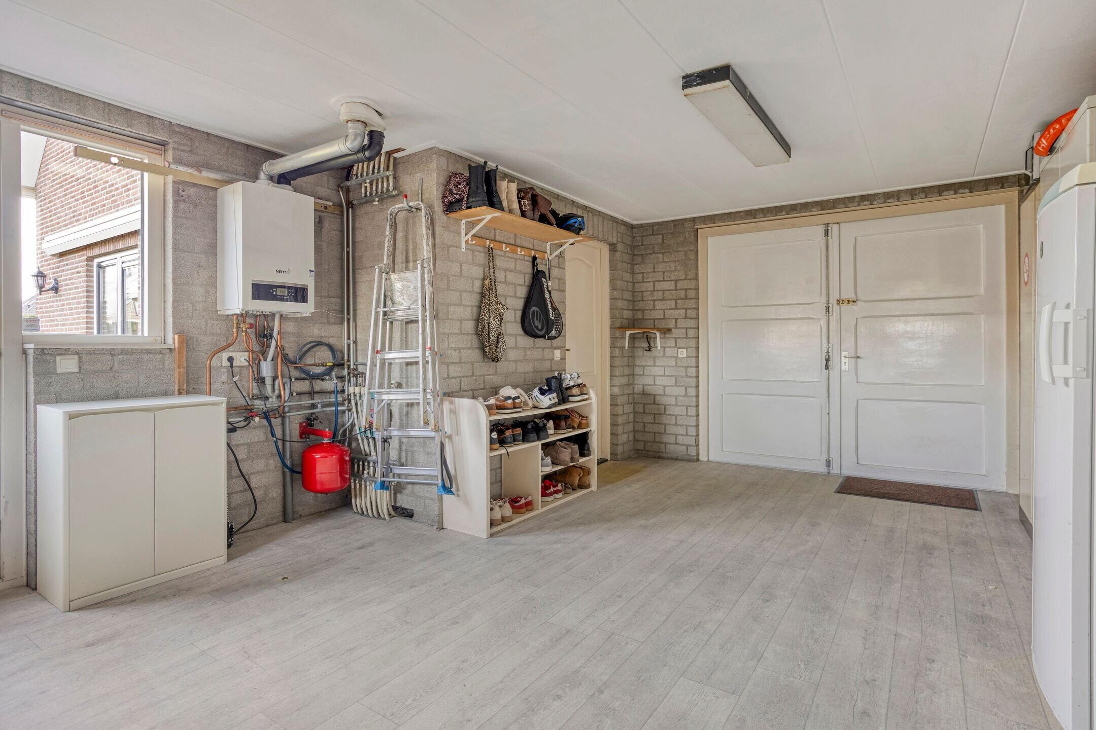 De aangebouwde stenen garage (ca. 25 m²) is voorzien van elektra, water en verwarming en biedt naast parkeergelegenheid ook extra opslag- of hobbyruimte.