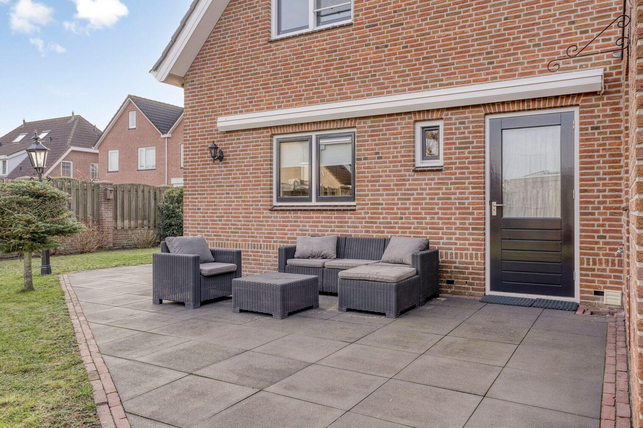 Aan de voorzijde een mooi beklinkerde inrit met grind/tegelpad rondom de woning en een nette border met vaste beplanting.